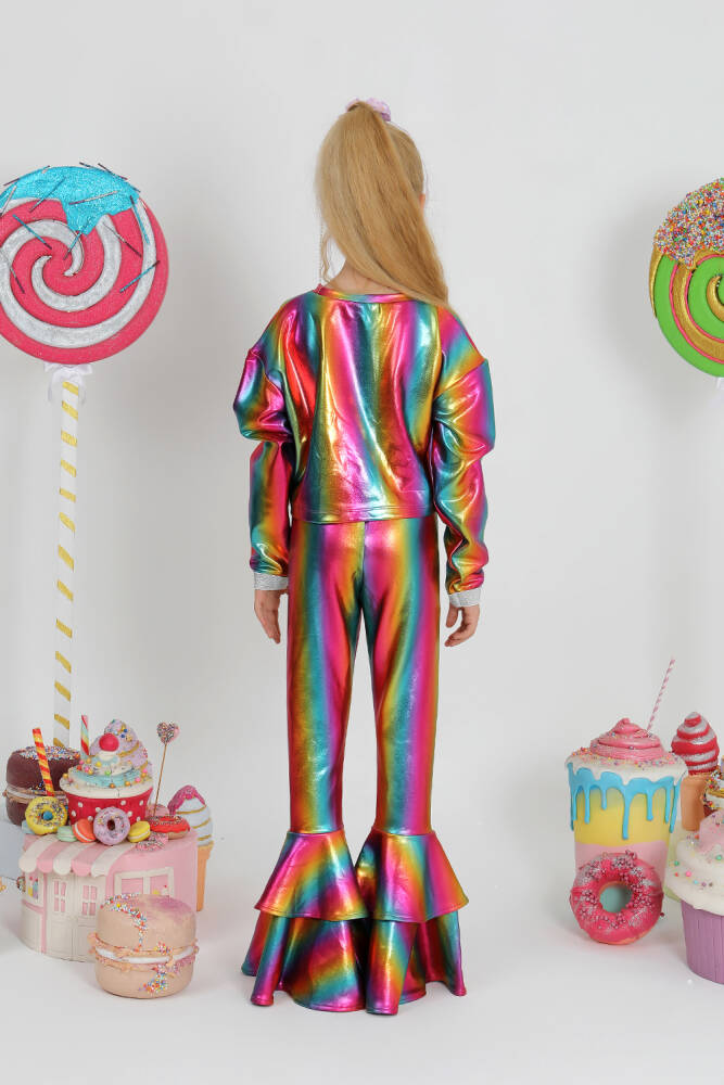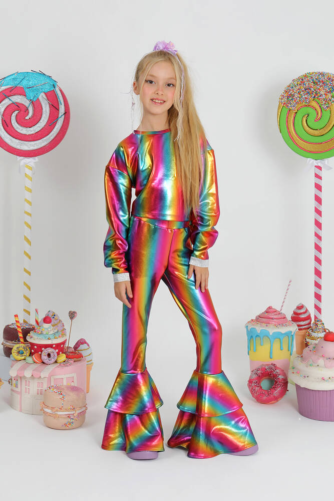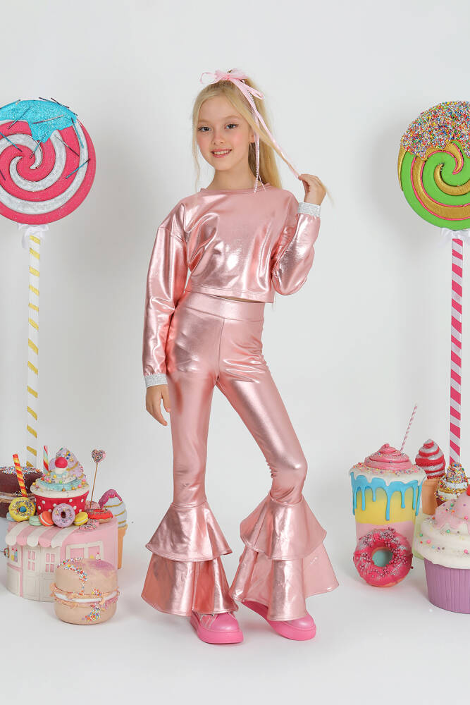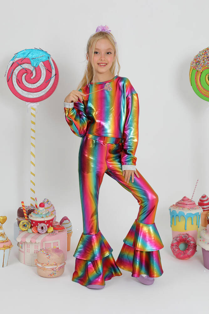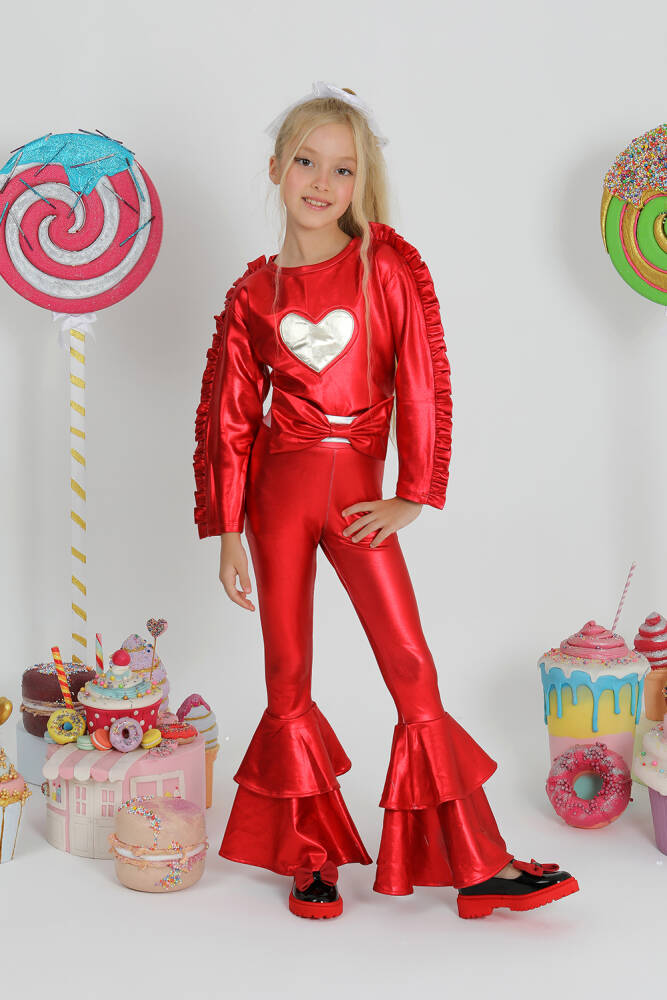parlak baskılı özel kumaş ispanyol paça ve volan detaylı harika takım