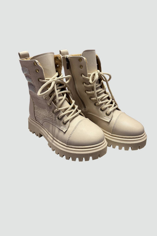 Ön kısmında bağcık detay bilekte bot. Yandan fermuar kapama. Tırtıklı taban.