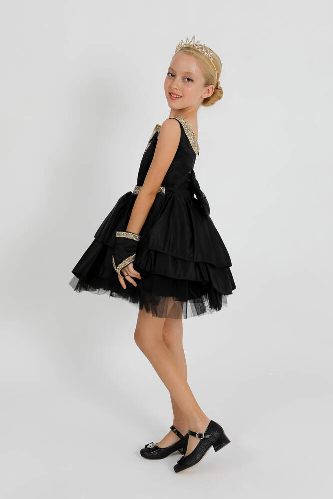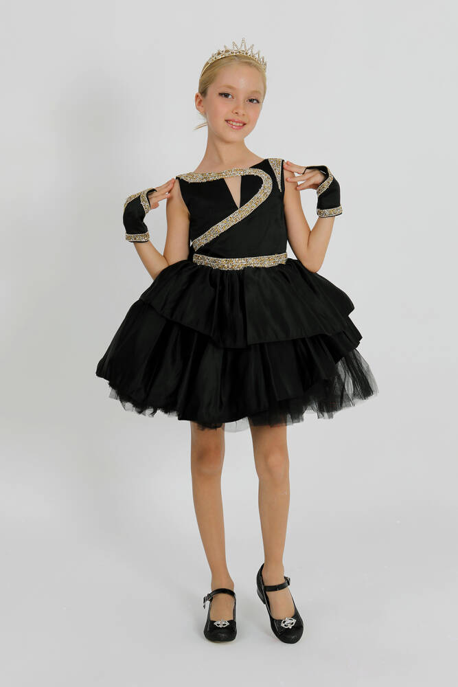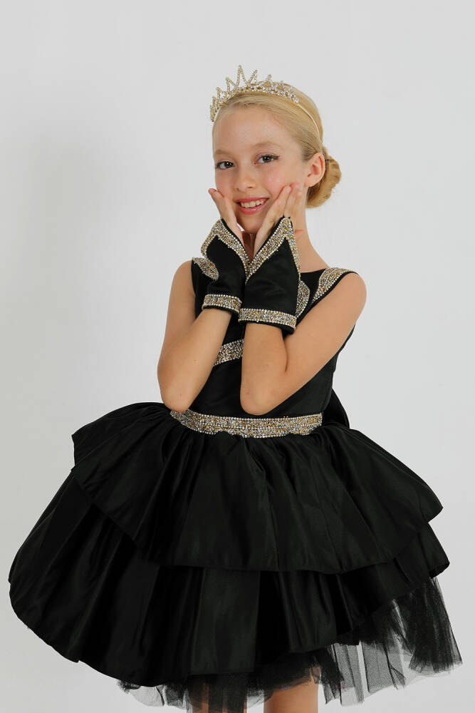 saten ve boncuk yapıştırma detaylı , katlı tül kanarık etek kesim ösel elbise. eldiveni ve taç aksesuarı