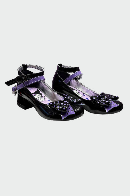 Kuromili topuklu ayakkabı. Fiyonk detay, iki adet tokalı kapama